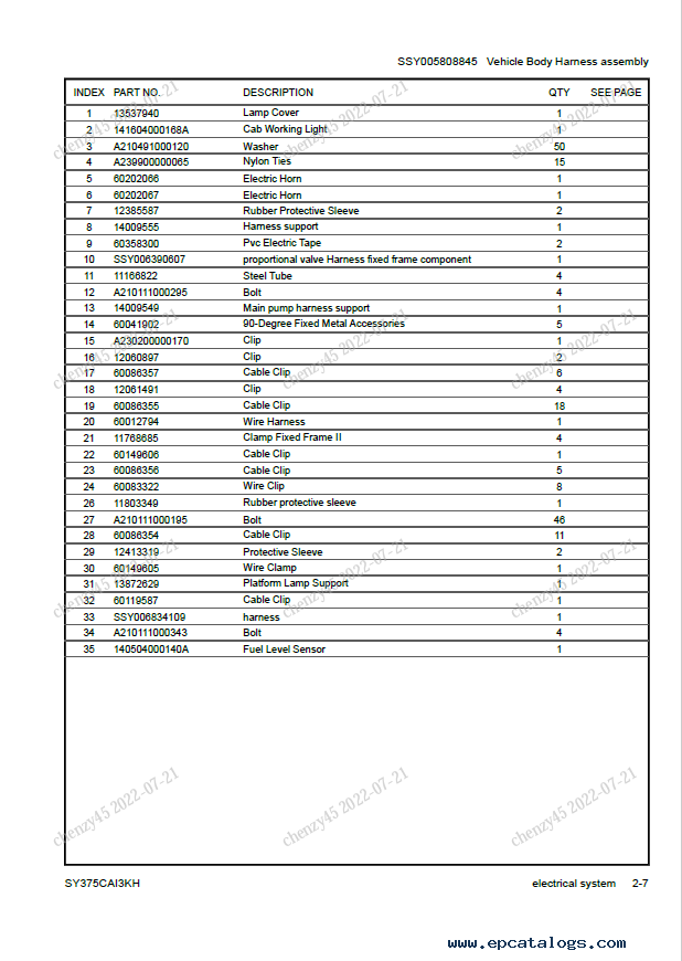Screenshots for Sany Hydraulic Excavator SY750C1I3KH Parts Manual PDF: