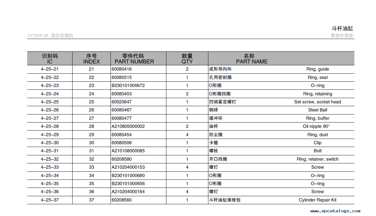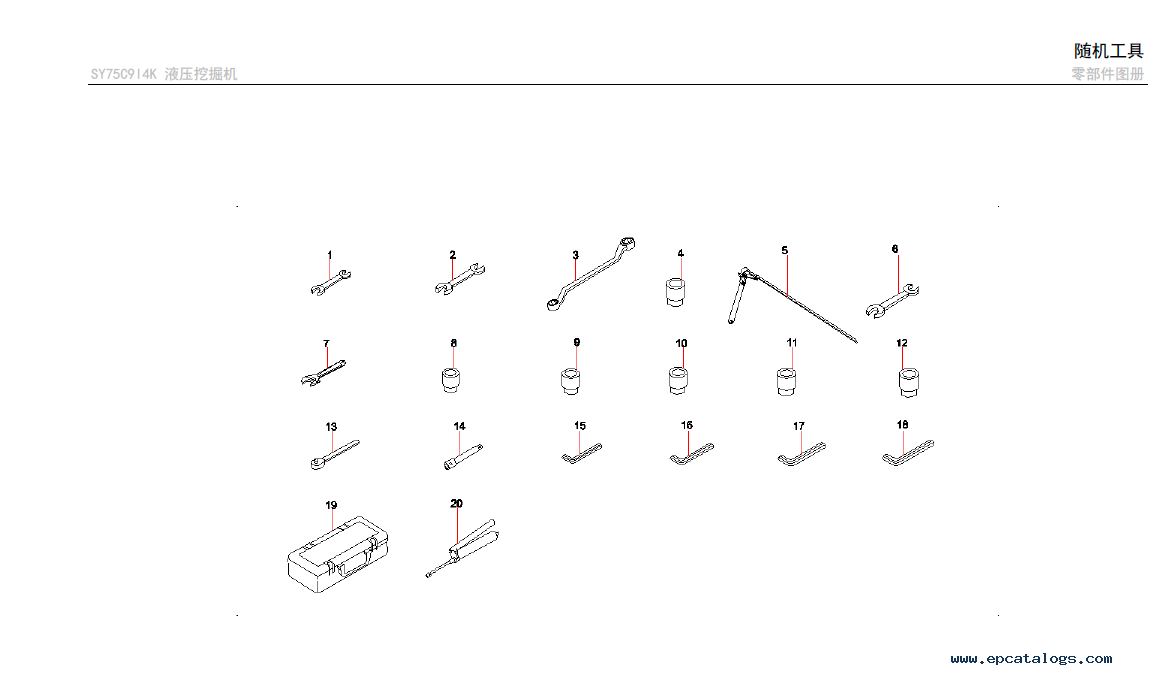 Related products for Sany Hydraulic Excavator SY75C9I4K Parts Catalog PDF:
