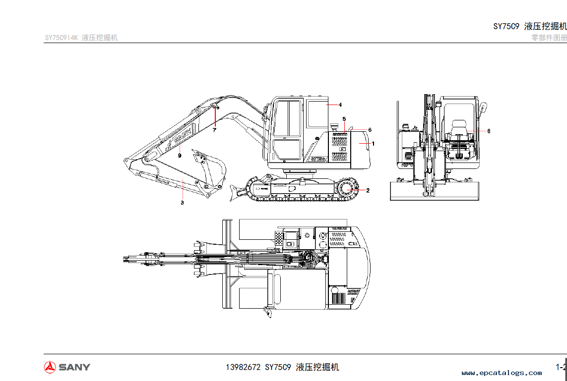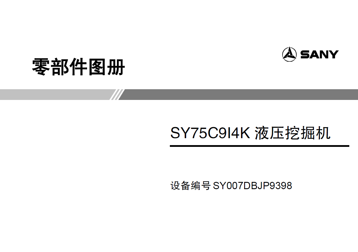 Sany Hydraulic Excavator SY75C9I4K Parts Catalog PDF