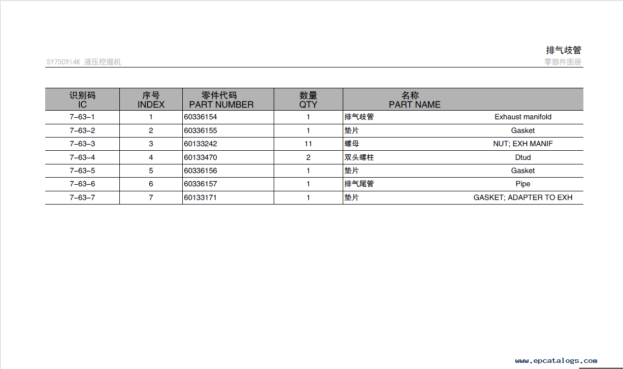 Screenshots for Sany Hydraulic Excavator SY75C9I4K Parts Catalog PDF: