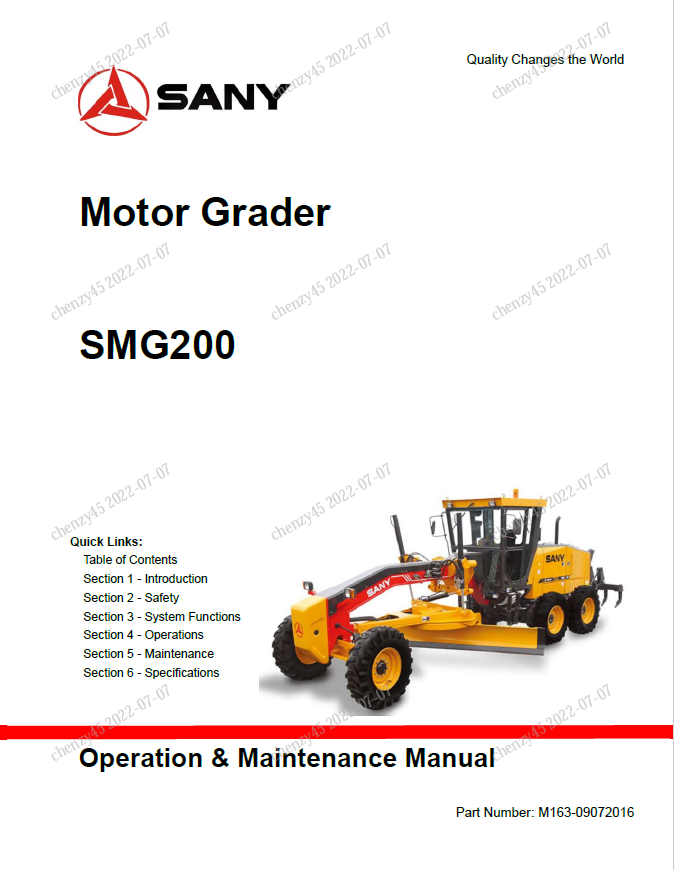 Screenshots for Sany Motor Grader SMG200 Operation and Maintenance Manual PDF: