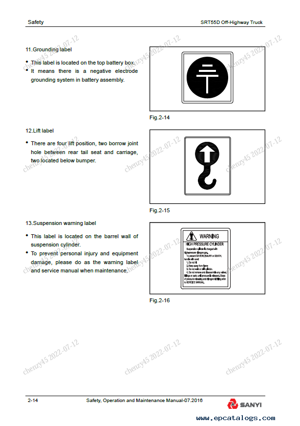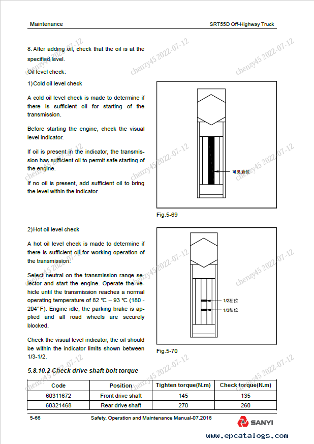 [2016]This Safety, Operation, and Maintenance Manual provides detailed instructions, detailed descriptions, notes, technical data, specifications, troubleshooting, many illustrations, and diagrams for maintaining and repairing the Sany Off-Highway Truck SRT55D model.