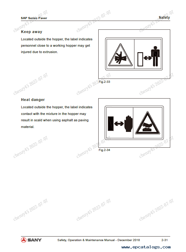 Screenshots for Sany Paver SAP90C-8, SAP100C-8 Safety, Operation and Maintenance Manual PDF: