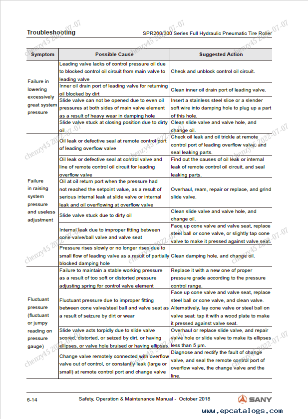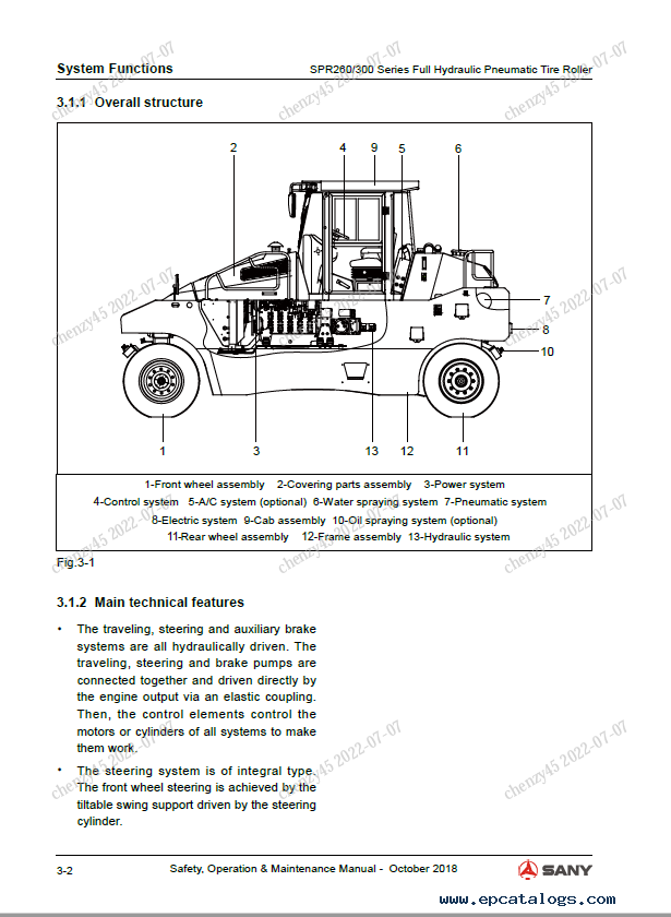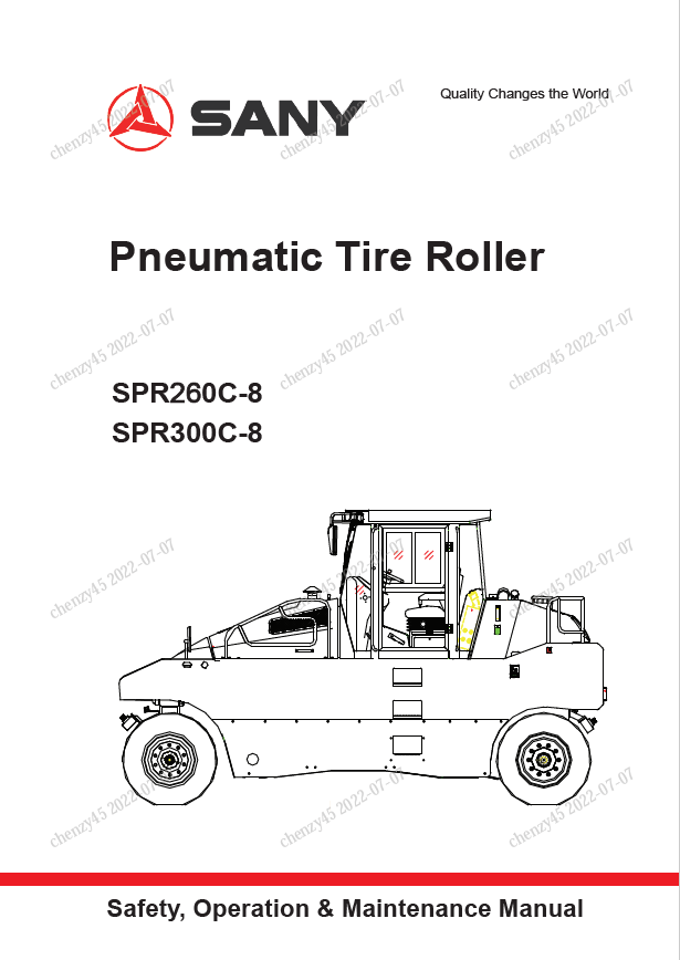 [2018]This Safety, Operation & Maintenance Manual in PDF file format is your irreplaceable assistant which helps proper use, technical maintenance, and repair procedures of Sany Pneumatic Tire Roller SPR260C-8, SPR300C-8 models.