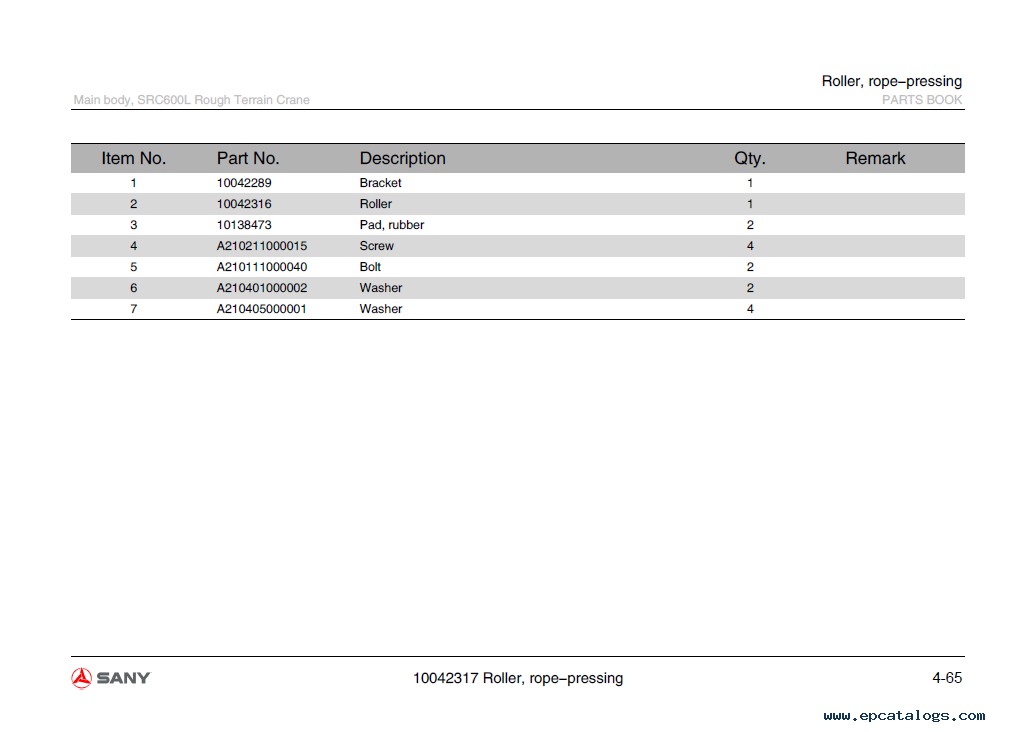 Screenshots for Sany Rough Terrain Crane SRC865XL Parts Book PDF: