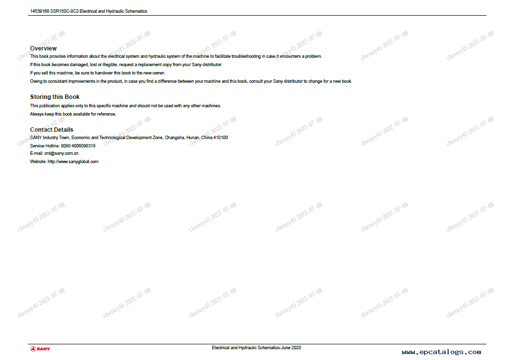[2020]This PDF Manual is intended to serve, repair, and troubleshoot the Sany Single Drum Roller SSR150C-8 model.