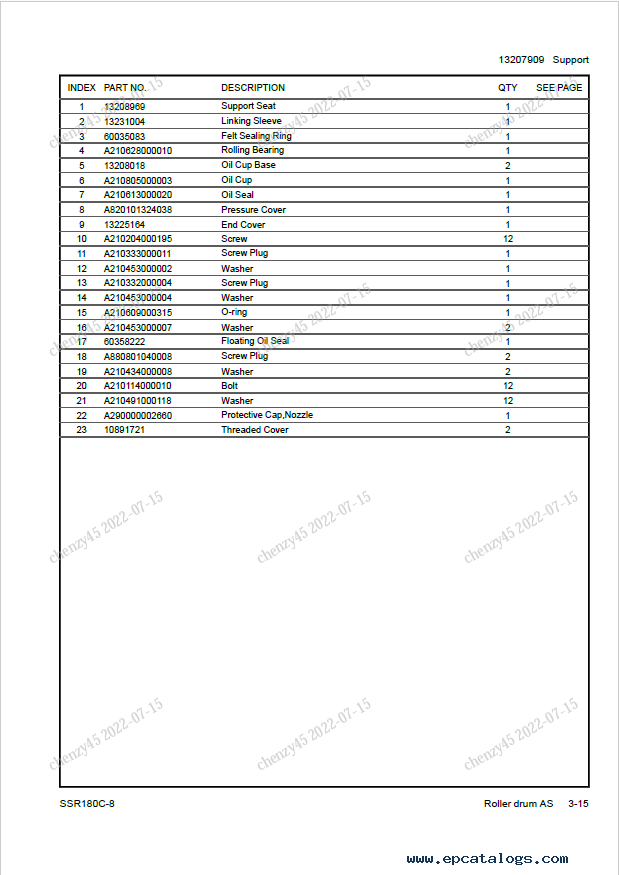 Sany Single Drum Roller SSR180C-8 Parts Manual PDF