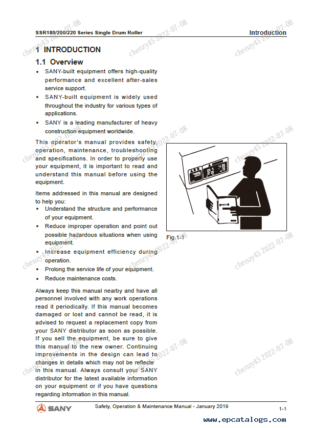 Screenshots for Sany Single Drum Roller SSR180C-8 Safety Operation and Maintenance Manual PDF: