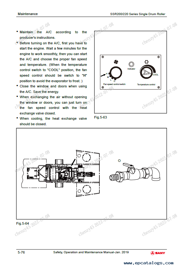 Sany Single Drum Roller SSR200C-8H, SSR220C-8H Safety Operation and Maintenance Manual PDF