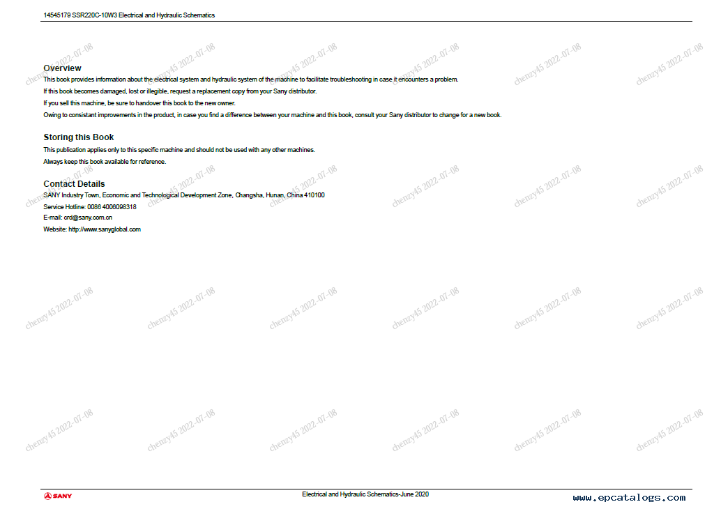 [2020]This schematic manual includes wiring electrical instructions, schematics, and pictures, which help to serve and troubleshoot Sany Single Drum Roller following models:
