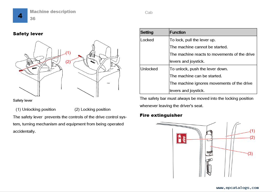 The electronic manual contains material about technical data, general information, settings, accessories, troubleshooting, hydraulics.