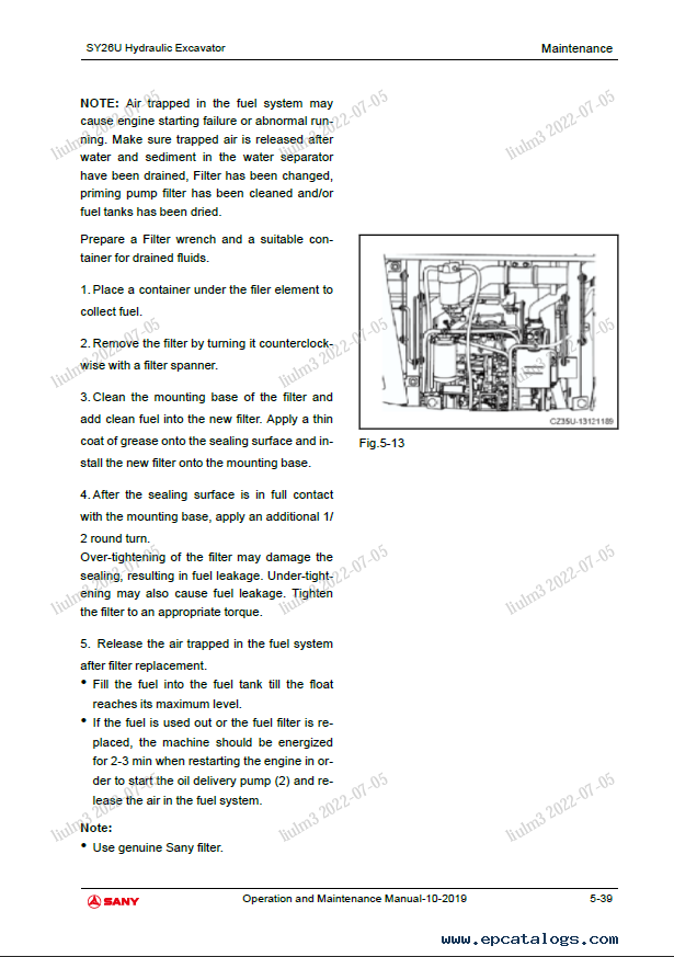 Screenshots for Sany SY26U Crawler Hydraulic Excavator Operation and Maintenance Manual PDF: