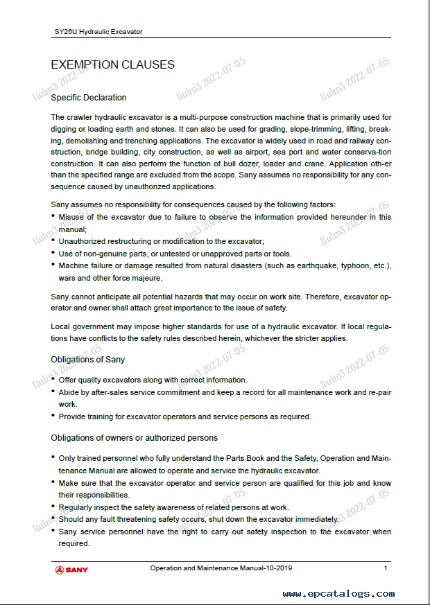 [2019]This PDF Operation and Maintenance Manual was written specially for the Sany SY26U Crawler Hydraulic Excavator, and covers detailed descriptions, repair recommendations, technical maintenance, many diagrams and charts, and others.