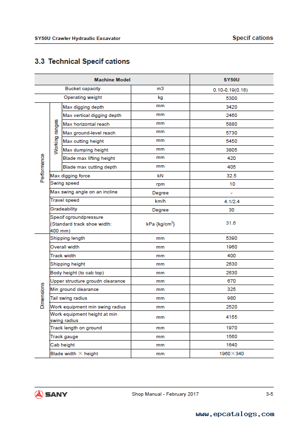Sany SY50U Crawler Hydraulic Excavator Shop Manual PDF