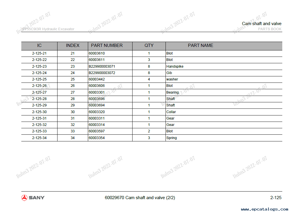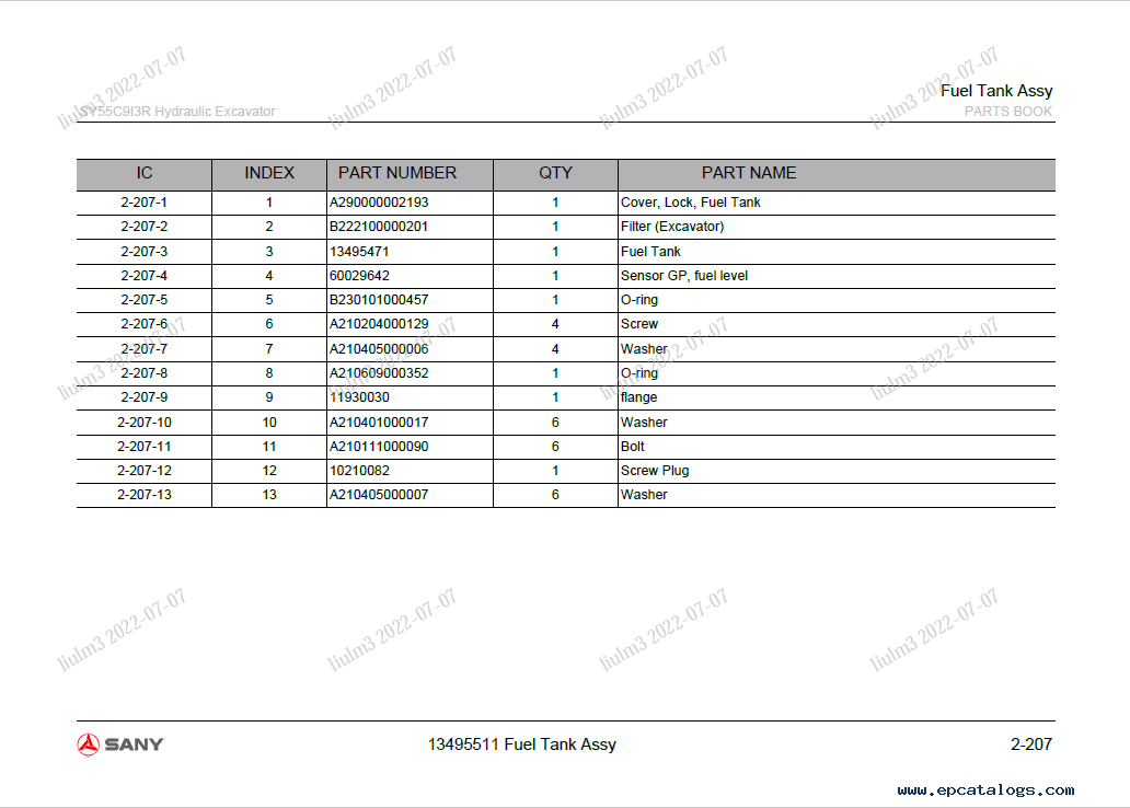 []This Parts Manual was presented specifically for correct use, technical data, troubleshooting, and operation for the Sany SY55C9 Hydraulic Excavator model.