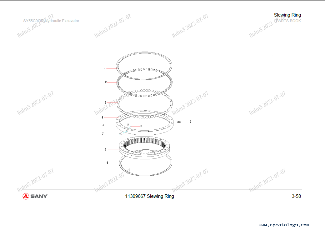 Screenshots for Sany SY55C9 Hydraulic Excavator Parts Manual PDF: