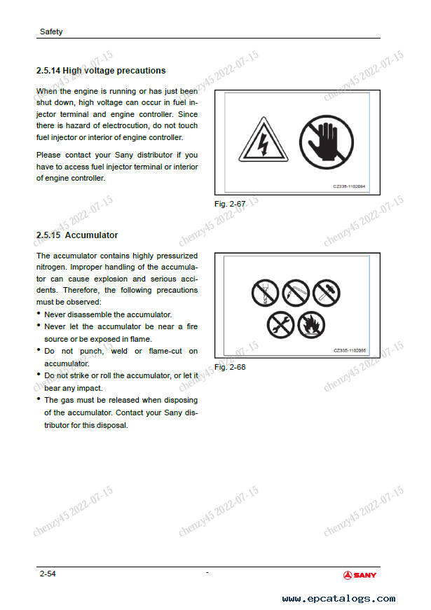 Sany Crawler Hydraulic Excavator SY245H, SY265C Maintenance Manual