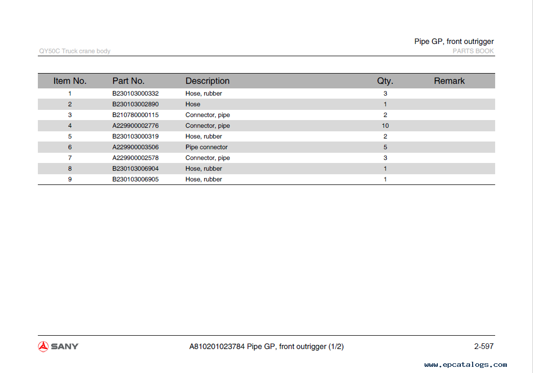 []This PDF parts manual provides information on spare parts, system materials, settings, transmission, a detailed description, a parts list, and step-by-step recommendations for your Sany Truck Crane STC500S6 model.