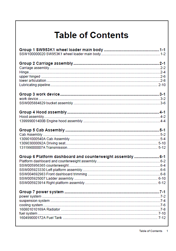 Screenshots for Sany Wheel Loader SW953K1 Parts Manual PDF: