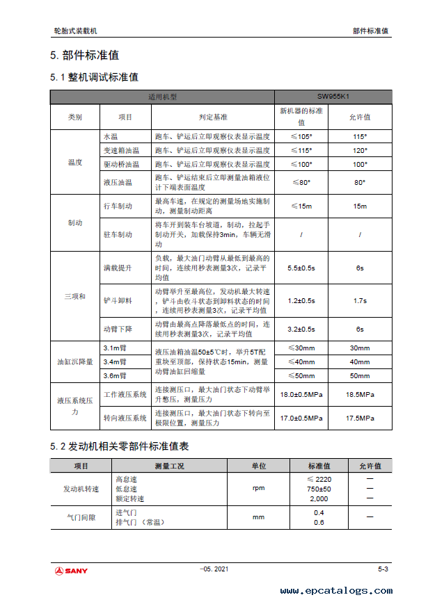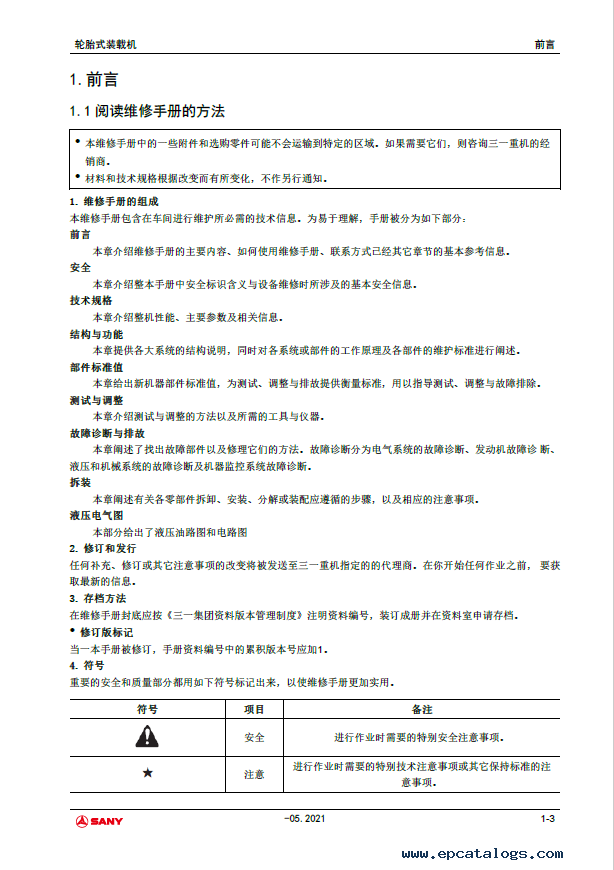 [2021]This PDF Repair Manual contains service information for the Sany Wheel Loader SW955K1 model. Information is provided on description and operation, troubleshooting, settings, overhaul, safety, and specifications.
