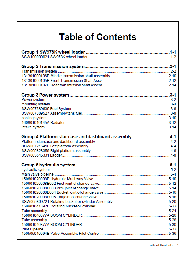 []This PDF Parts Catalog is designed specifically for the component parts of the Sany Wheel Loader SW978K Model. Do not lose this PDF parts manual. The parts catalog helps you know the correct models and serial numbers you need for the parts.