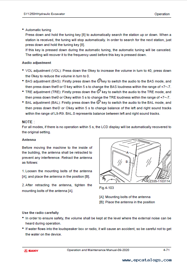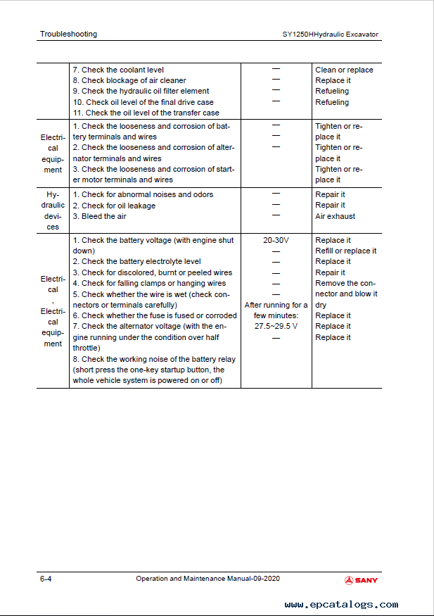 Screenshots for Sany Wheeled Hydraulic Excavator SY1250H Operation and Maintenance Manual: