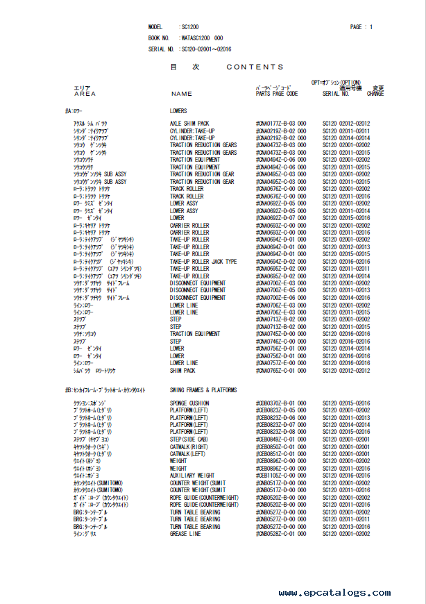 Screenshots for Sumitomo Crane SC1200 Parts Catalog PDF: