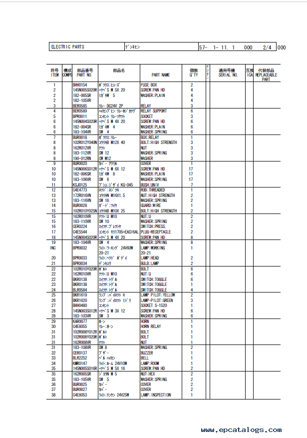 The Electronic catalog includes a list of useful parts information, detailed descriptions, safety, a list of parts, operation, settings, electric parts, accessories.