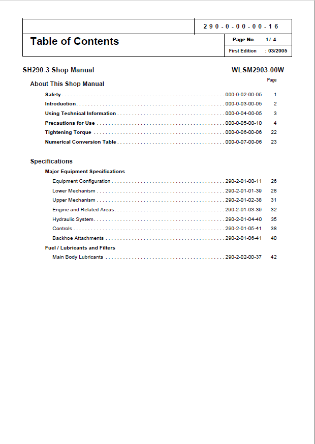 [2005]The purpose of this Workshop Manual is to help service masters and owners in the efficient service procedures, repair information, technical data, and troubleshooting for the Sumitomo Hydraulic Excavator SH290-3 model.