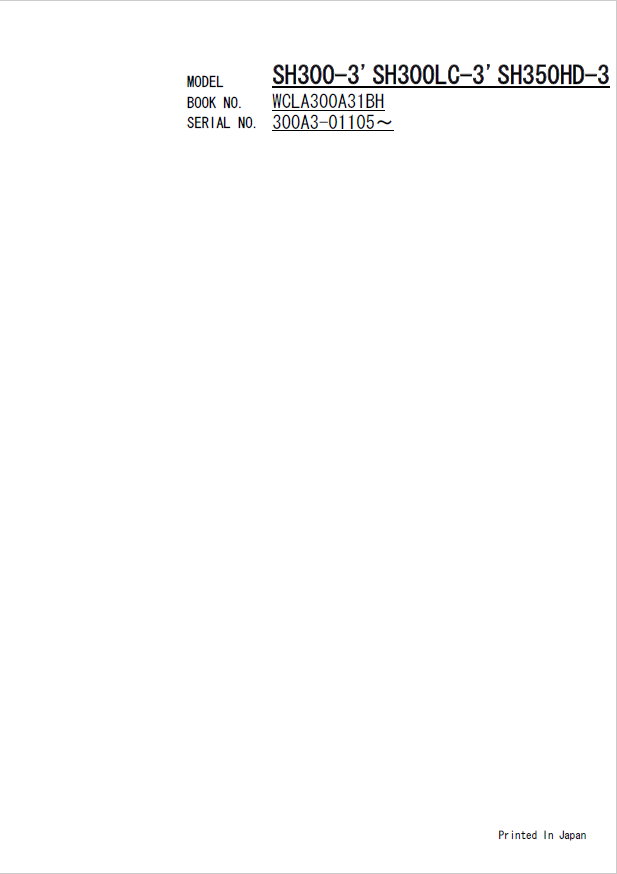 Sumitomo Hydraulic Excavator SH300-3, SH300LC-3, SH350HD-3 Parts Manual PDF