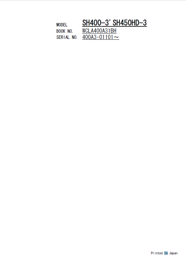 Sumitomo Hydraulic Excavator SH400-3, SH450HD-3 Parts Manual PDF