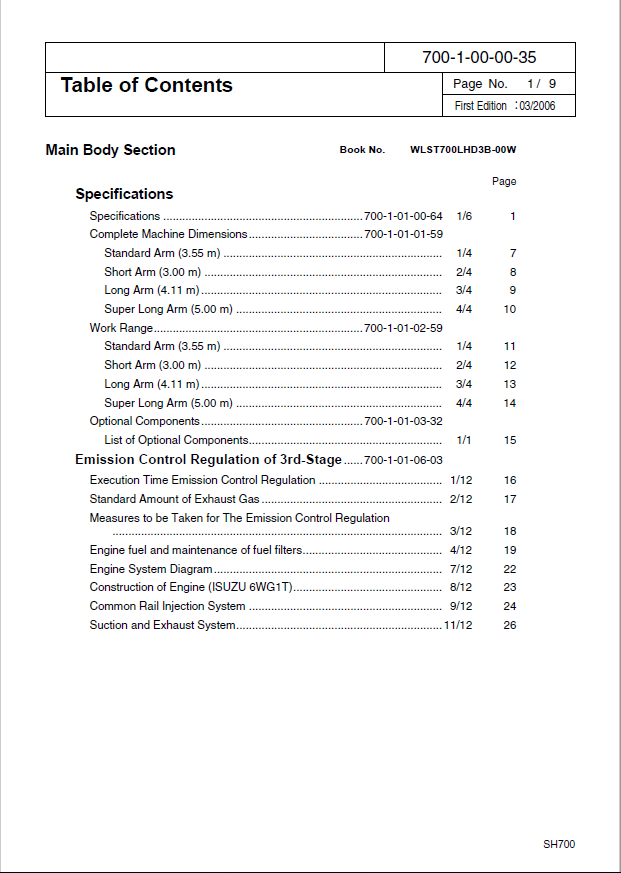 []This Service Manual has been prepared to provide general information, service instructions, troubleshooting and step by step instructions with illustrations for Sumitomo Hydraulic Excavator SH700LHD-3B model.