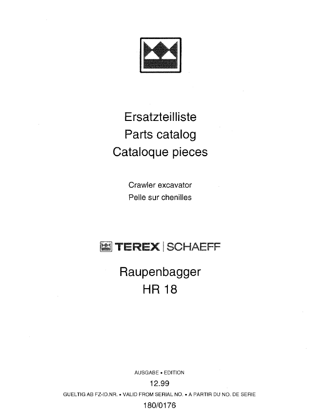 Parts catalog was developed by Terex specialists for the HR 18 excavator in order to use it with ease, to ensure maximum performance and also to maintain the parts. The information and data on parts for the excavator HR18 are in accordance with the recommendations and verified by experts.