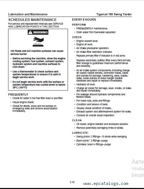 Screenshots for Tigercat Swing Yarder 180 Operator’s Manual PDF:
