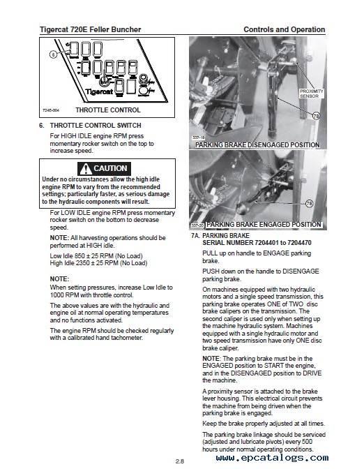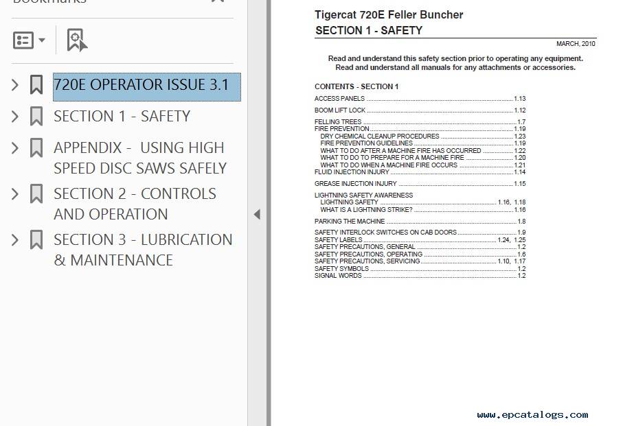 Screenshots for Tigercat Feller Buncher 720E Operator’s Manual PDF: