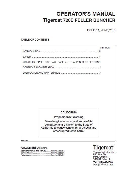 This PDF Operator's Manual will help you maintain and operate the Tigercat Feller Buncher 720E Model, and also maintain quality work, and more. The operator's manual will enable the operator to familiarize himself with the tractor, as each move necessary is illustrated and described. The operator does not need an in-depth knowledge of mechanical specifications, and this operator's manual is enough.