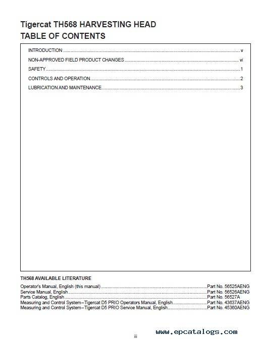 Related products for Tigercat Harvesting Head TH568 Operator’s Manual PDF: