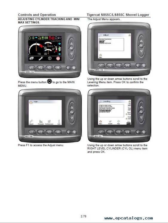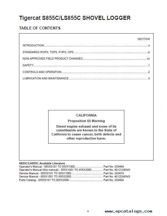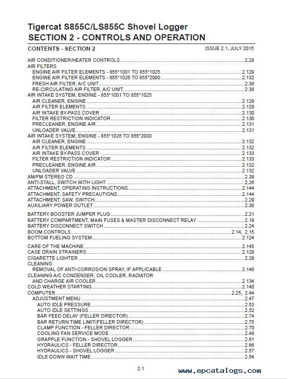 Screenshots for Tigercat Shovel Logger S855C/LS855C Operator’s Manual PDF: