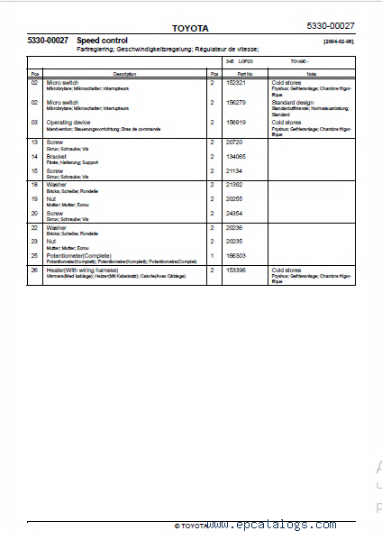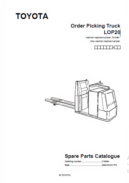 Toyota Order Picking Truck LOP20 Spare Parts Catalog PDF